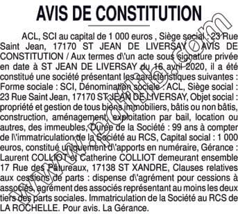 ACL - Immatriculation