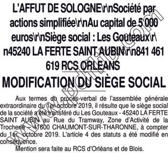 ON / AFFUT DE SOLOGNE / TRANSFER