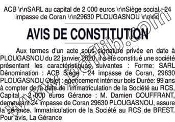 La présentation de votre annonce peut varier selon la composition graphique du journal