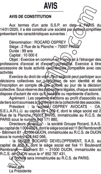 AVIS CONSTIT° ROCARD OSPREY