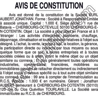 AVIS DE CONSTITUTION