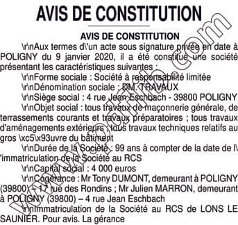 La présentation de votre annonce peut varier selon la composition graphique du journal