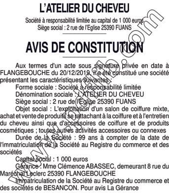 La présentation de votre annonce peut varier selon la composition graphique du journal