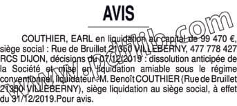 EARL COUTHIER - dissolution