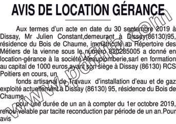 La présentation de votre annonce peut varier selon la composition graphique du journal
