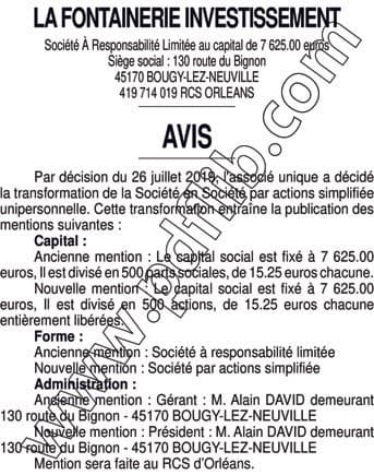 EP / FONTAINERIE INVESTISSEMENT