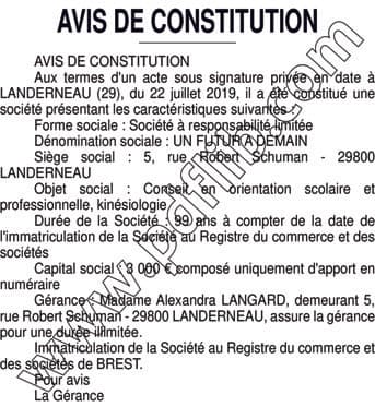 La présentation de votre annonce peut varier selon la composition graphique du journal