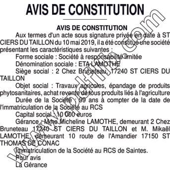 La présentation de votre annonce peut varier selon la composition graphique du journal