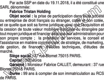 FABRICE TRISTAN HOLDING - ()