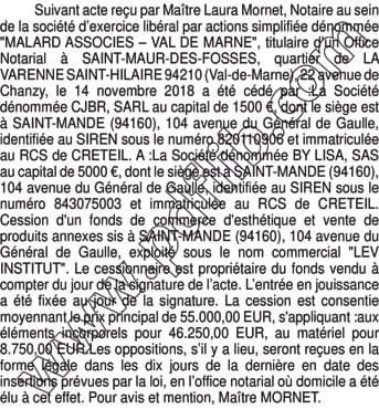 La présentation de votre annonce peut varier selon la composition graphique du journal