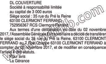 dans le journal L'ANNONCEUR LEGAL D'AUVERGNE