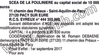 SCEA DE LA POULINIERE Gérance