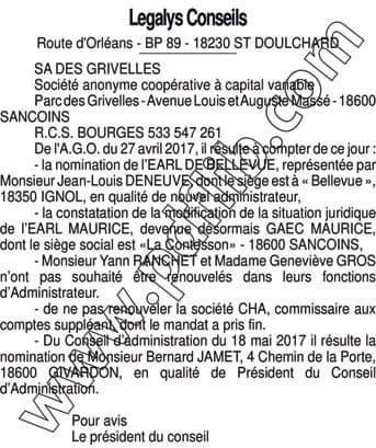dans le journal L'INFORMATION AGRICOLE DU CHER