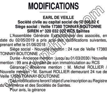 EARL DE VEILLE modif / SGR