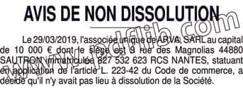 Arva : non-dissolu°
