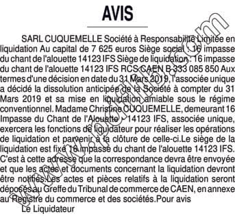 Dissolution CUQUEMELLE