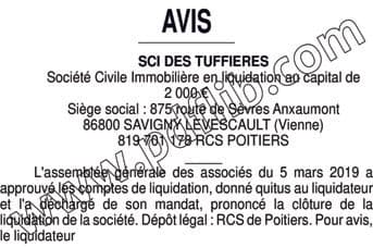 SCI TUFFIERES - Liquidation