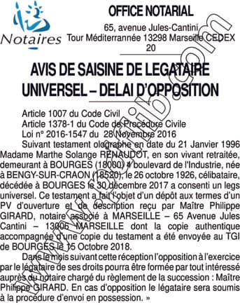 La présentation de votre annonce peut varier selon la composition graphique du journal