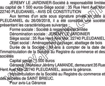 SARL JEREMY LE JARDINIER