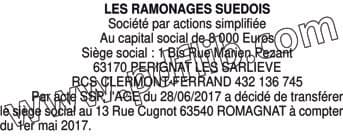 dans le journal L'ANNONCEUR LEGAL D'AUVERGNE