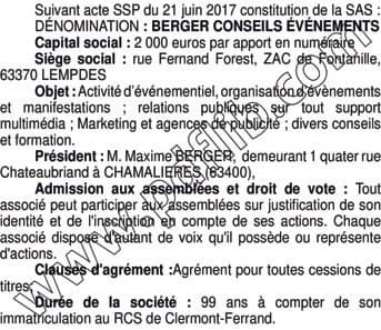 dans le journal L'ANNONCEUR LEGAL D'AUVERGNE