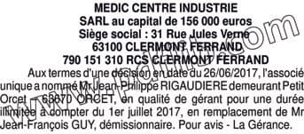 dans le journal L'ANNONCEUR LEGAL D'AUVERGNE