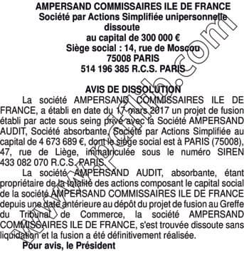 SAS AMPERSAND COMMISSAIRES IDF