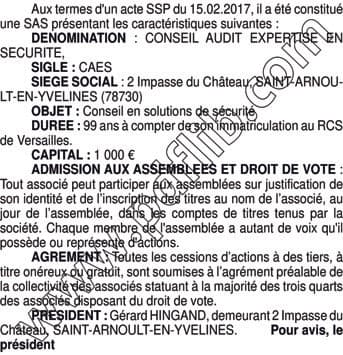 dans le journal LE JOURNAL SPECIAL DES SOCIETES