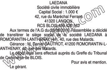 La présentation de votre annonce peut varier selon la composition graphique du journal