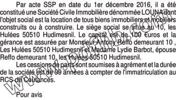 La présentation de votre annonce peut varier selon la composition graphique du journal