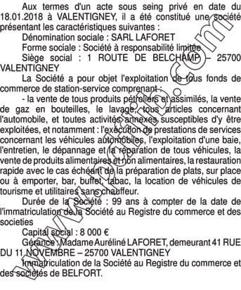 SARL LAFORET CONSTITUTION