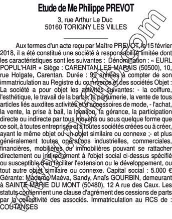 La présentation de votre annonce peut varier selon la composition graphique du journal