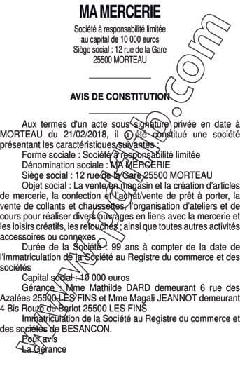 La présentation de votre annonce peut varier selon la composition graphique du journal