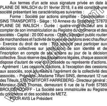 SINS TRANSPORTS
