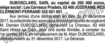 dans le journal L'ANNONCEUR LEGAL D'AUVERGNE