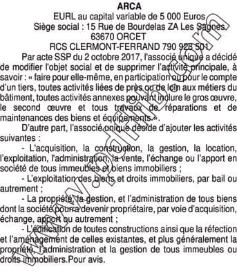 dans le journal L'ANNONCEUR LEGAL D'AUVERGNE