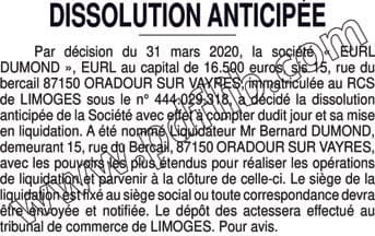 La présentation de votre annonce peut varier selon la composition graphique du journal