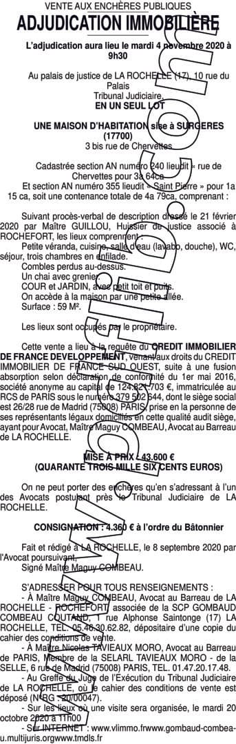 La présentation de votre annonce peut varier selon la composition graphique du journal
