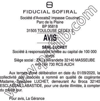 Nomination cogérante LUCHET