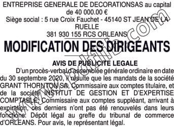 La présentation de votre annonce peut varier selon la composition graphique du journal