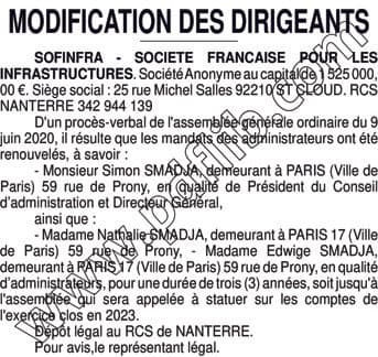 SOFINFRA / Renouvellement Adm