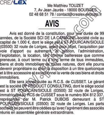 dans le journal LES AFFICHES DE L'ALLIER