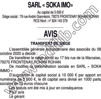 La présentation de votre annonce peut varier selon la composition graphique du journal