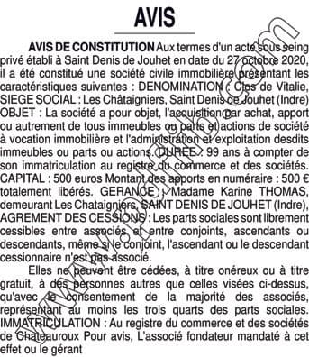 Constitution SCI Clos de Vitalie