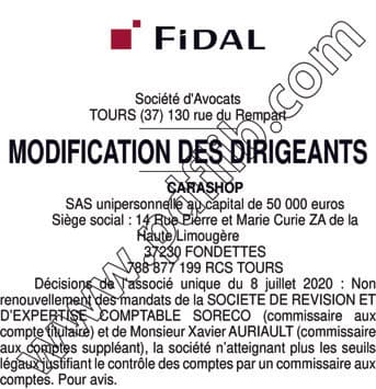 CARASHOP non renouvellement CAC