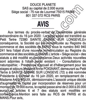 La présentation de votre annonce peut varier selon la composition graphique du journal