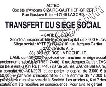 La présentation de votre annonce peut varier selon la composition graphique du journal