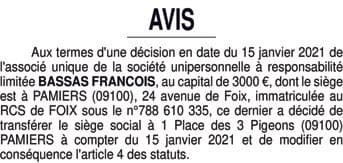 La présentation de votre annonce peut varier selon la composition graphique du journal