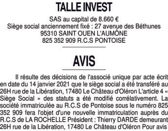 La présentation de votre annonce peut varier selon la composition graphique du journal