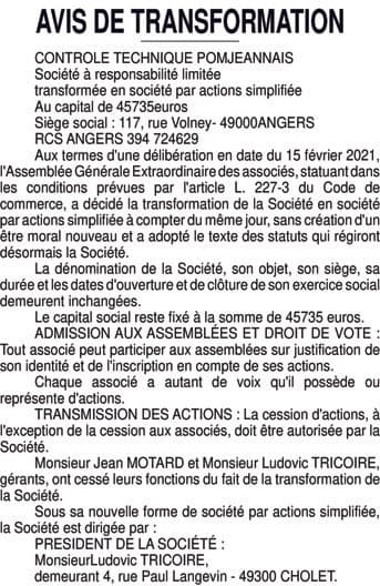 La présentation de votre annonce peut varier selon la composition graphique du journal